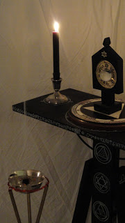 Altar of the Stars, Holy Table, Crystal in ebony pedestal, Tripod censor, candles